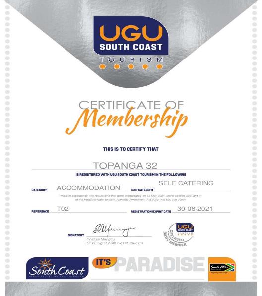 Topanga 32 and Chelsea place 7 is privately owned, You deal directly with the owner, We have valid certificates of membership from the South Coast Tourism